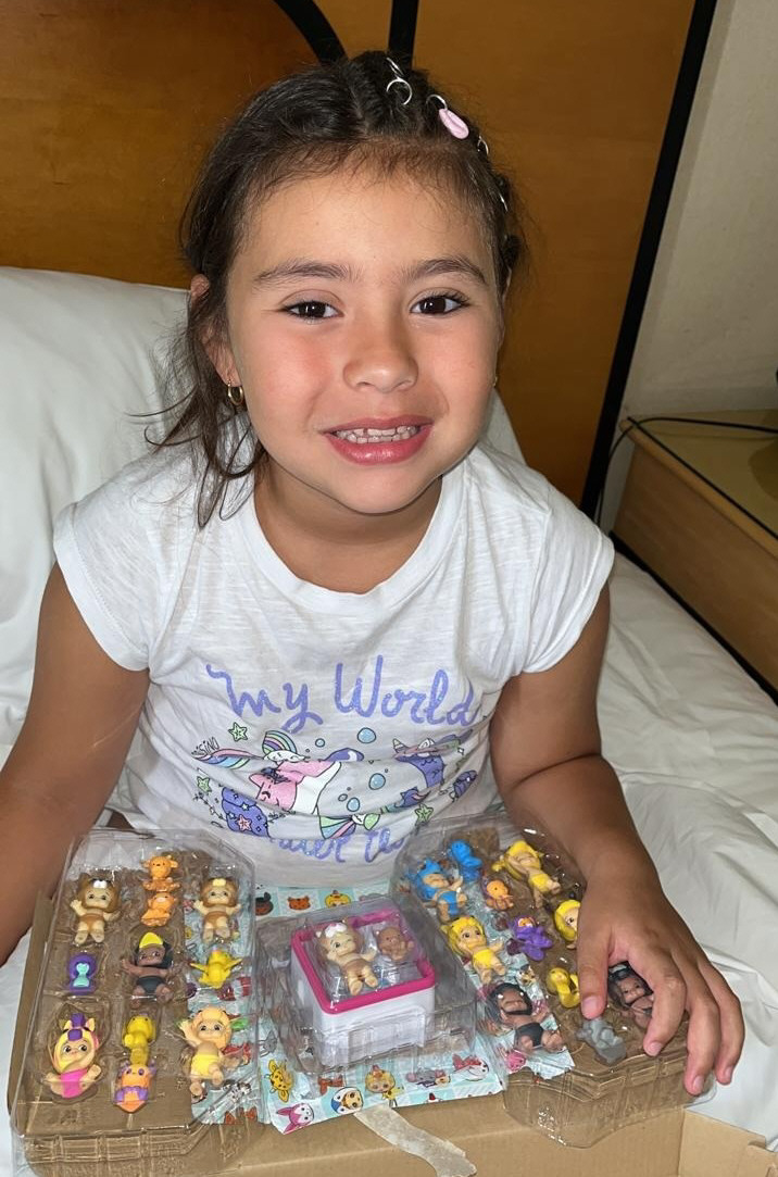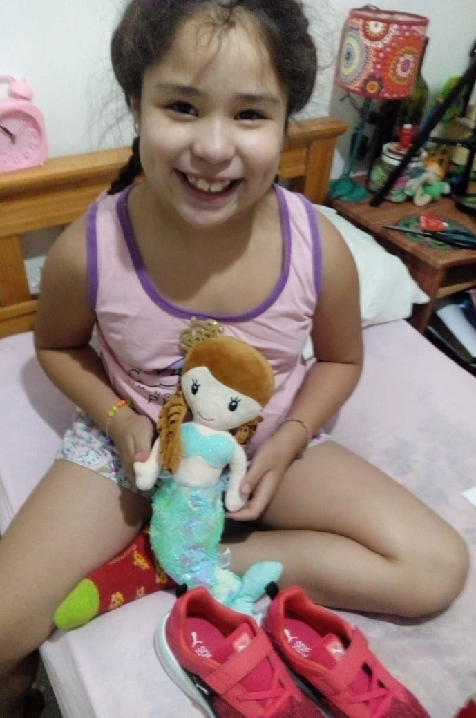 Caterina , una santaluceña de 8 años, estuvo agradecida de su muñeca sirena y sus zapas.