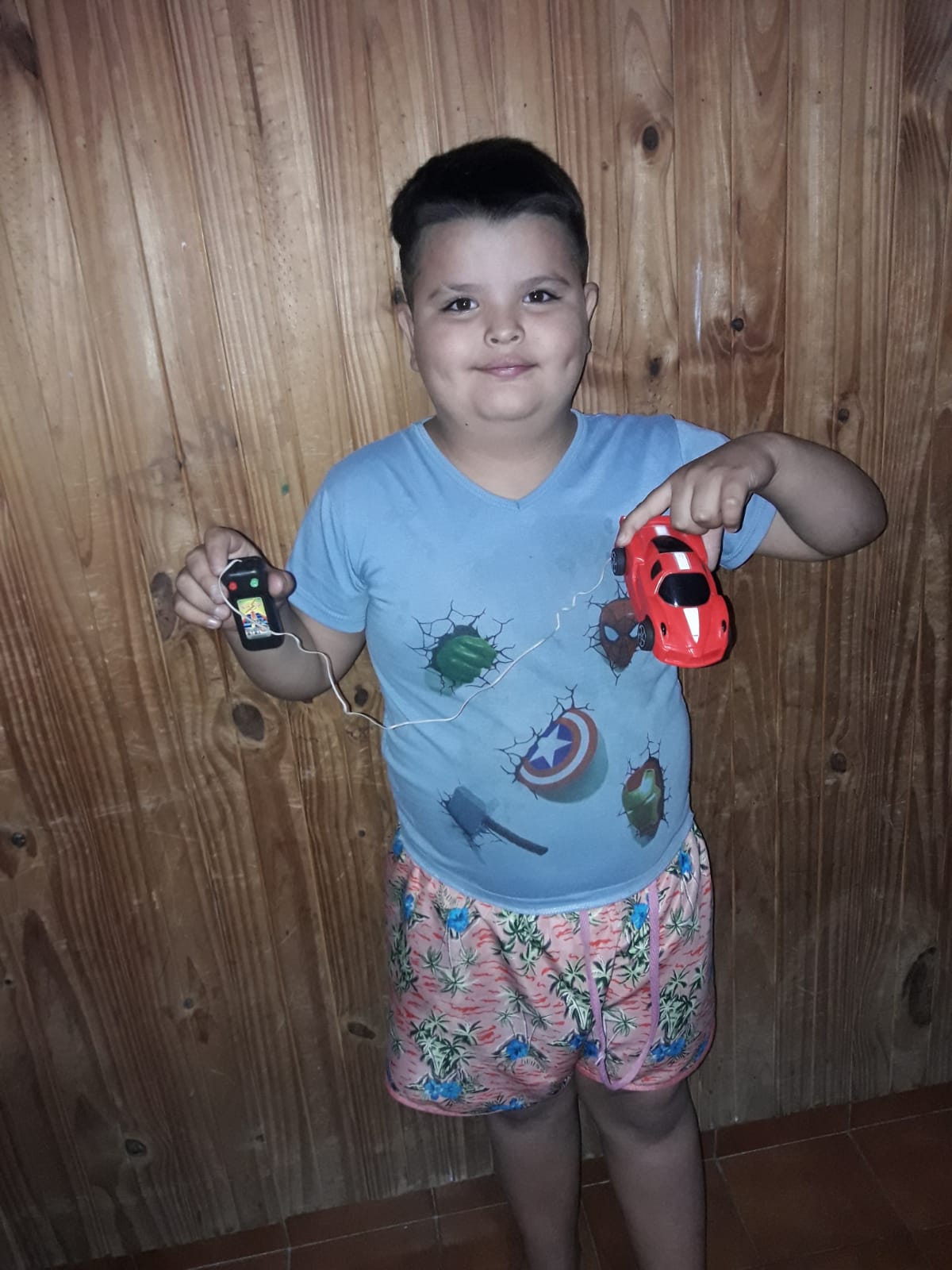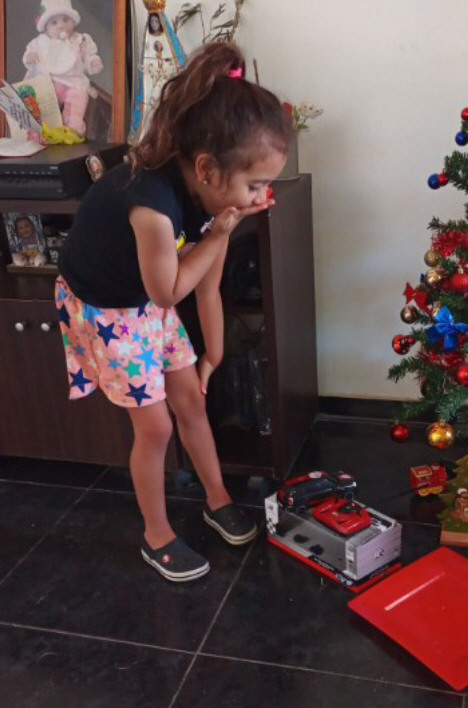 Emma Díaz Vedia (4) , de Rawson, se llevó la mejor sorpresa con su auto a control remoto.