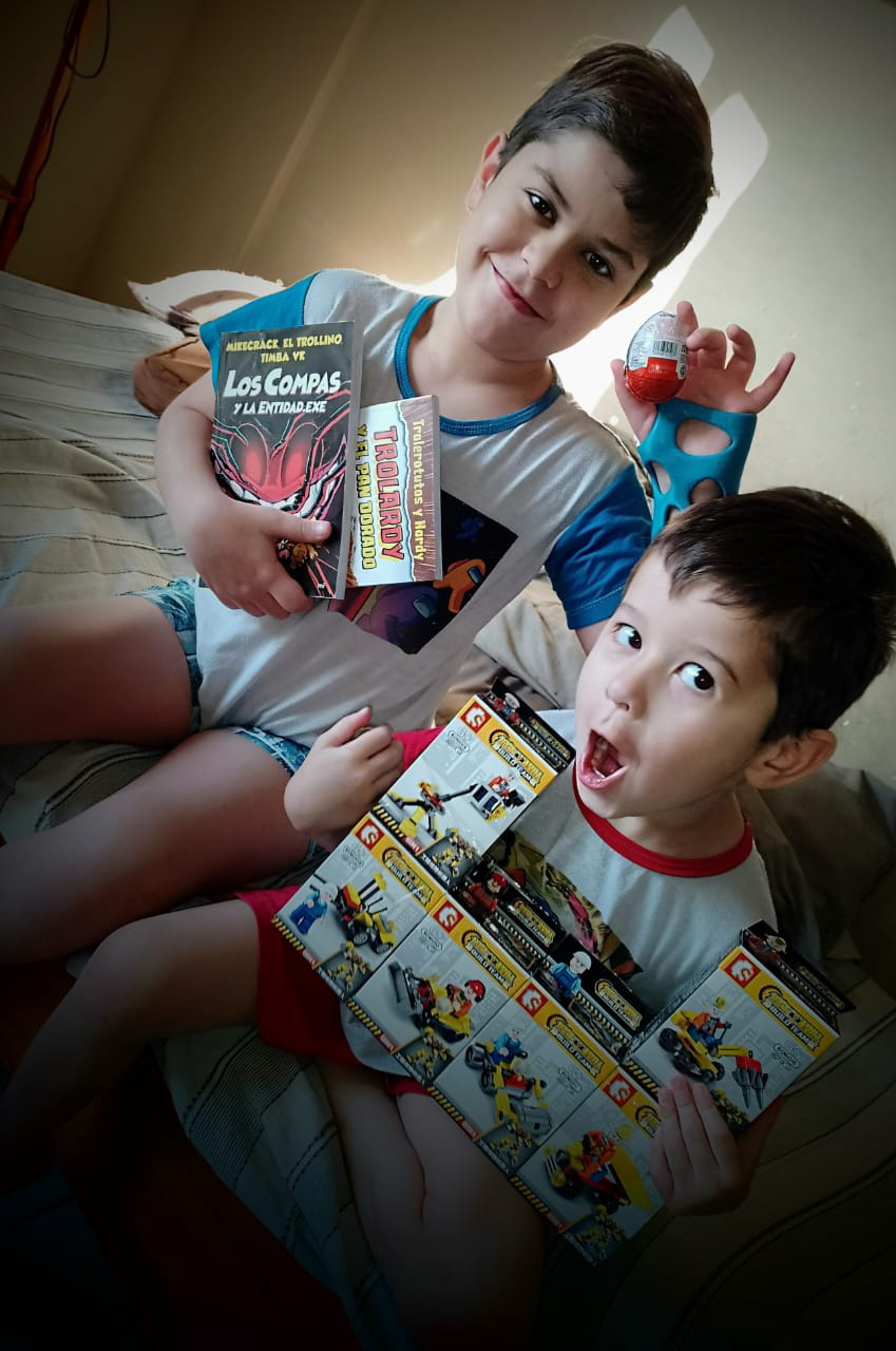 Pedro y Manuel Castillo Kaziura , de 9 y 4 años, estuvieron felices con sus libros y juegos Lego.