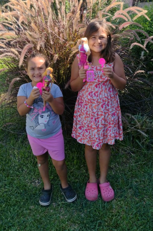 Juana Distéfano (8) y Catalina Distéfano (5) , de Rawson, recibieron distintos tipos de muñeca.