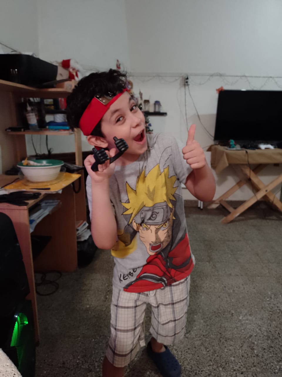Nazareno Soto (7) , de Capital, salió a usar de inmediato su ametralladora de Spiderman.