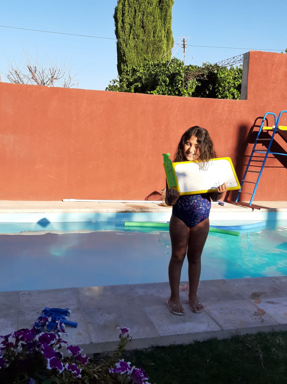 Zoe sorrentino, de 7 años, recibió una malla y una pizarra