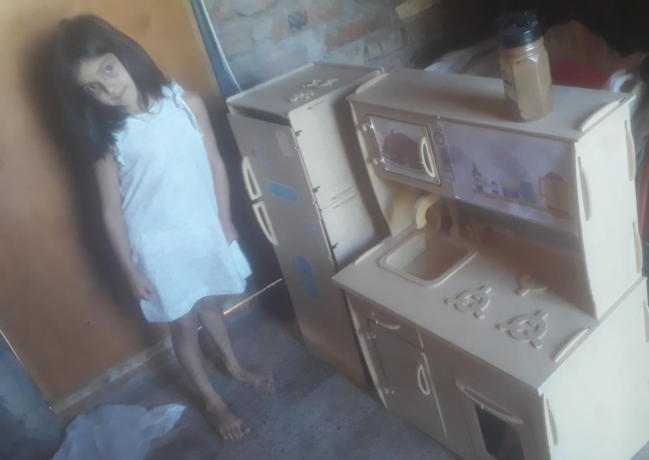 Sofía Romero, de Rawson, posó junto a su mamá con su flamante set de cocina.