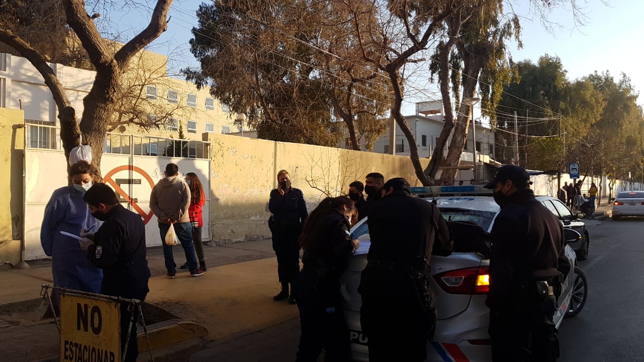 Ante esta situación, Echegaray y Márquez se negaron y se fueron del lugar, ignorando todas las medidas de prevención, aún cuando la mujer las conoce a la perfección por trabajar en el lugar (no difundieron en qué cargo o sector). Ambos fueron perseguidos por el guardia de seguridad y cuando la pareja se encontraba en la vereda de calle Santa Fe intersección de Patricias Sanjuaninas, fueron detenidos por personal policial que había sido convocado por parte de la seguridad privada del hospital.