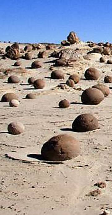 La Cancha de Bochas es una de las formaciones geológicas más atractivas del Parque Ischigualasto, además de ser una de las estaciones que conforman el circuito interno para el turismo. Todavía es un misterio la forma de esas rocas, totalmente redondas, ya que están formadas básicamente por granos de arena que terminaron cementándose en forma circular. Lo único que se sabe al respecto es que esta formación natural de concretos presenta una estratificación horizontal original.