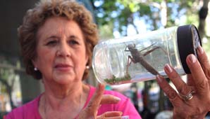 San Juan, 19 de Noviembre.- Ofelia Ríos no sale de su asombro, es que ayer encontró en su patio una langosta de más de 10 centímetros. Ahora la mujer luce el insecto en un frasco, pero analiza que hacer con ella.