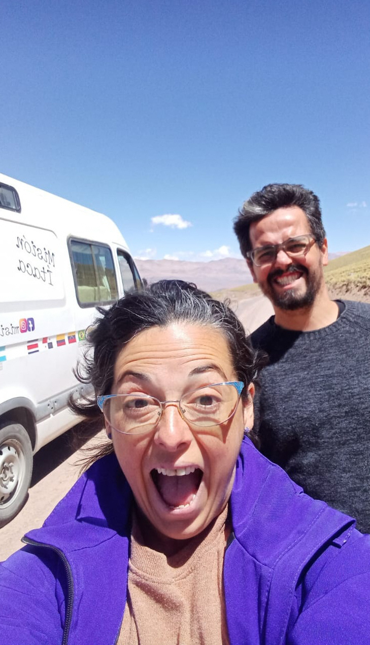 Al igual que ella, David también trabajaba en el museo, pero como programador. Además, poco tiempo antes de emprender el viaje habían montado una biblioteca en Angaco, de donde Melina es oriunda. "Cuando decidimos hacer realidad esta aventura, lo primero que hicimos fue ponernos objetivos. Dijimos que íbamos a conseguir la camioneta y eso hicimos", dijo y contó que en agosto pasado compraron la movilidad y la fueron acondicionando según sus necesidades. La combi tiene camas, cocina, baño y paneles solares para que tenga una mejor autonomía.