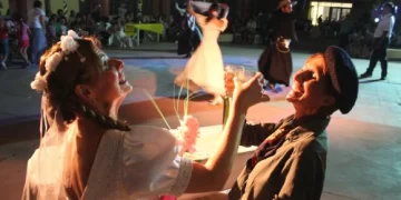En la Escuela Martina Chapanay, ubicada en el barrio Chimbas I, festejaron el Día de la Tradición de una forma particular: hicieron la representación de un casamiento criollo. Fue tan bien lograda la puesta en escena, que los novios (interpretados por maestras caracterizadas) llegaron en sulky a la escuela, los alumnos bailaron folclore vestidos de gauchos y paisanas, los padres y personal docente se sentaron a las mesas como si estuvieran en pulpería y hasta se sirvieron empanadas. El broche fue la actuación en vivo del grupo Inti Huama.