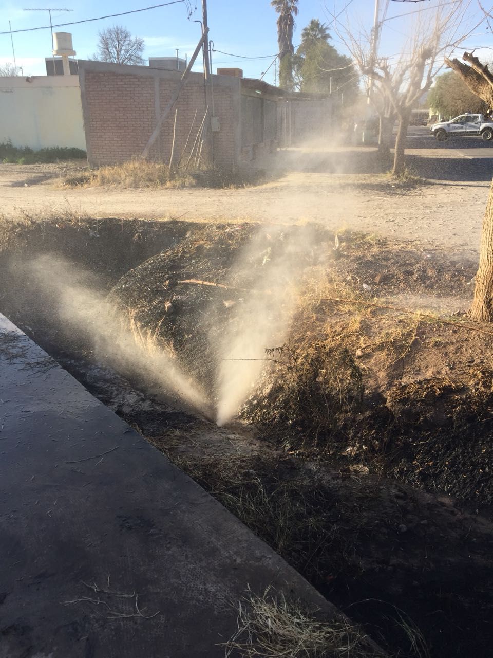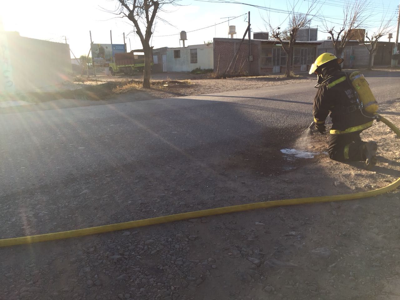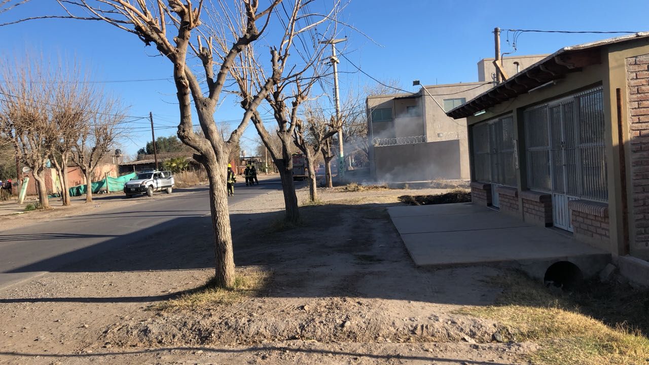 Según informaron testigos a DIARIO DE CUYO, un pequeño incendio en el césped de una vivienda de calle Juan José Bustos, a la entrada del Barrio Los Olivos, hizo contacto con la conexión de gas de unos departamentos y provocó la fuga. Hasta el momento se desconoce si el caño estaba muy cerca de la superficie o simplemente mal conectado.