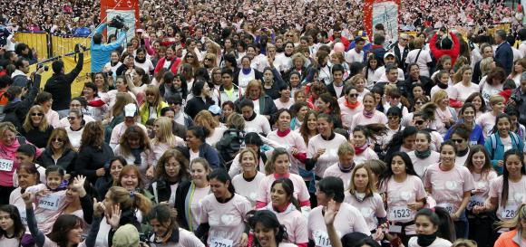 Ayer, las mujeres que participaron del maratón contra el cáncer de mama no esperaron la hora de la largada para ponerse en movimiento. Durante un hora antes de ese momento practicaron zumba para entrar en calor. Esto, además de generar adrenalina, les sirvió tanto para preparar los músculos para correr como para combatir el frío. Este evento, organizado en forma conjunta por la Municipalidad de Capital, el Banco San Juan y el Sanatorio Argentino, se realizó por las calles de la ciudad y con un récord de participantes. En esta edición participaron casi 5.000 personas de todas las edades cuando en años anteriores no superaron las 3.000.