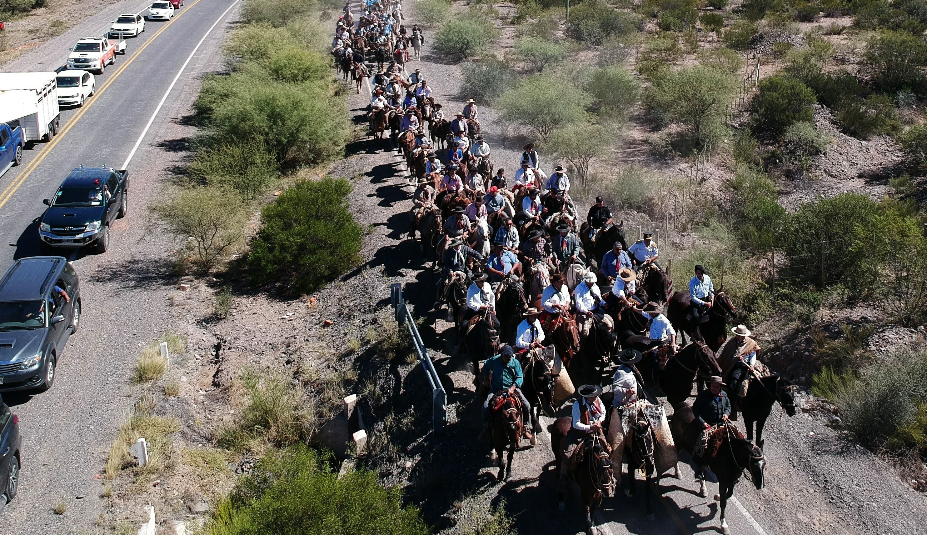 Además del servicio que prestó la Policía de San Juan hubo efectivos de Gendarmería Nacional que custodiaron la ruta. También hubo personal del RIM 22 que acompañó a caballo.