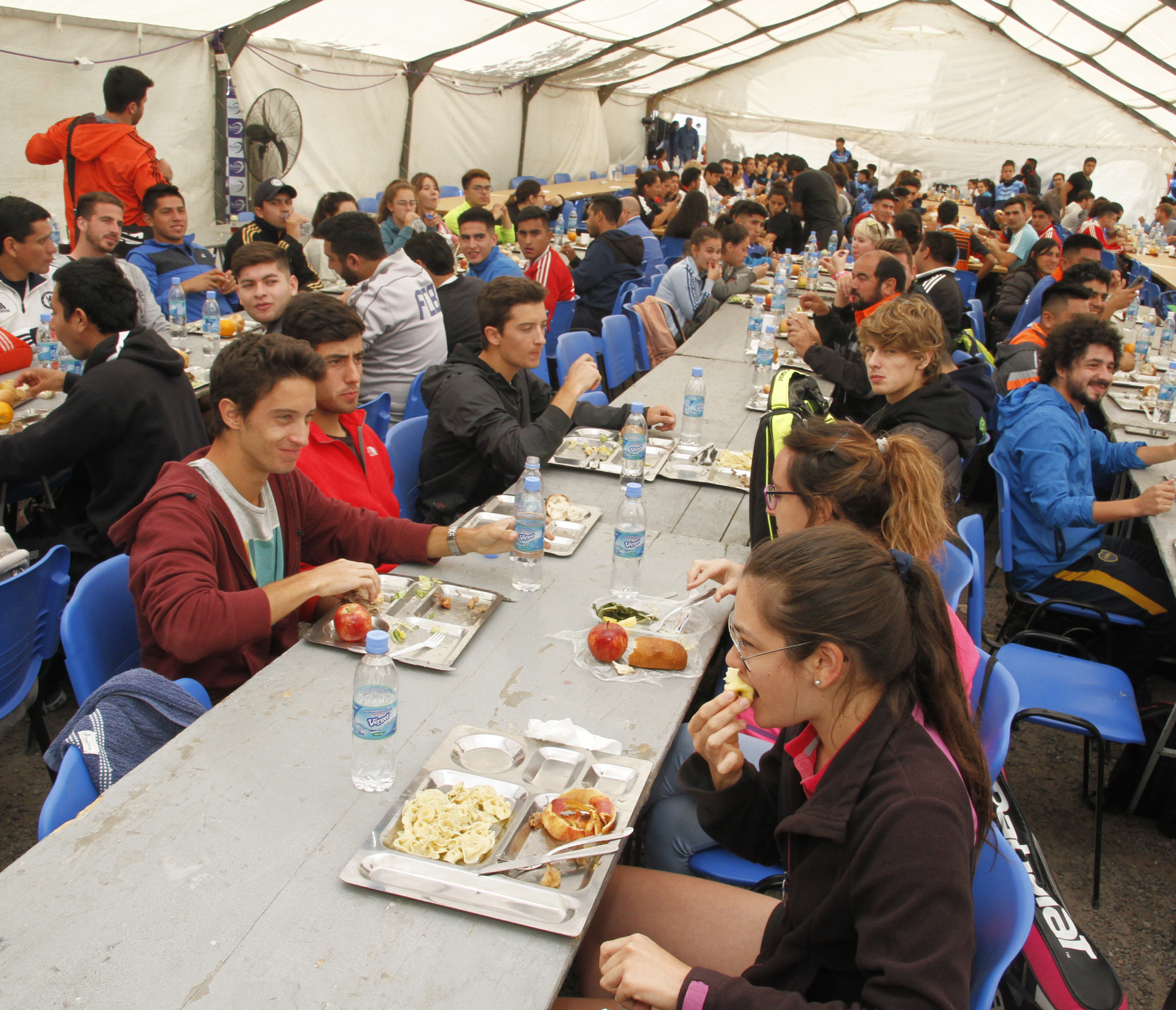 Durante el almuerzo se vivió uno de los momentos de mayor relajación, y a la vez uno de los más divertidos. Es que tras las competencias de las diferentes disciplinas, la fiesta se adueñó de los jóvenes. Hubo juegos recreativos, con premios, que hicieron que hasta corrieran entre las mesas para ganar. ‘Quien traiga una media rota se gana una gorra‘ y ‘el que se anime a bailar sobre una silla gana un premio‘ fueron algunas de las consignas que los jóvenes siguieron durante el almuerzo y que los hizo reirse a carcajadas. ‘Estamos pasando unos días súper divertidos‘ y ‘conocimos a mucha gente‘, fueron algunas de las frases que dijeron los estudiantes que coparon San Juan. Incluso, sin disimular las ganas de divertirse, algunos hasta preguntaron a dónde podían salir para conocer la noche sanjuanina.