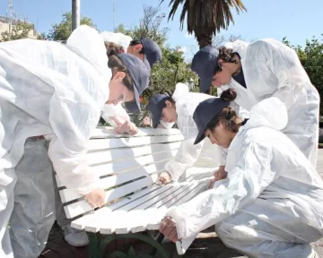 Con más voluntad que destreza, Johana sumergió el papel de lija en el balde de agua, convencida que así iba a lijar mejor los bancos de plaza que le habían tocado a su grupo. "Acá dice lija al agua, yo pensé que había que mojarla", se justificó entre risas cuando el coordinador le explicó que el agua era para limpiar el banco con una rejilla, pero antes de lijarlo. Mientras, sus compañeros Florencia, Jesica y Emilio fregaban con fuerza para sacar la suciedad y las inscripciones hechas en los bancos. "Ahora, cuando vea a alguien rayando un banco, voy a ser la primera en decir que eso no se hace", aseguró Jesica, quien se confesó una asidua visitante de la Plaza 25 de Mayo. "Es que esta plaza es nuestra", afirmó Florencia, otra de las integrantes del grupo de 60 chicos del Colegio Nacional Monseñor Pablo Cabrera que ayer empezaron a cumplir tareas voluntarias en el marco del programa Cuido mi destino.