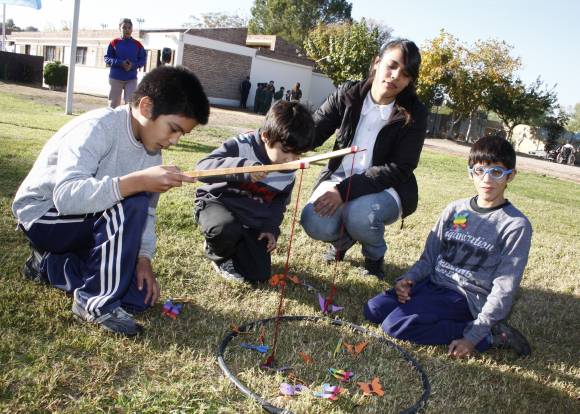 En otro sector, las líneas de cal marcaban los andariveles. Fue donde los chicos esperaron la bajada de bandera para correr hasta la meta. Los alumnos ciegos también corrieron, guiados por un compañero con una soga. En tanto en la otra punta de la escuela, un gran cajón de arena fue el escenario para que practicaran salto en largo.