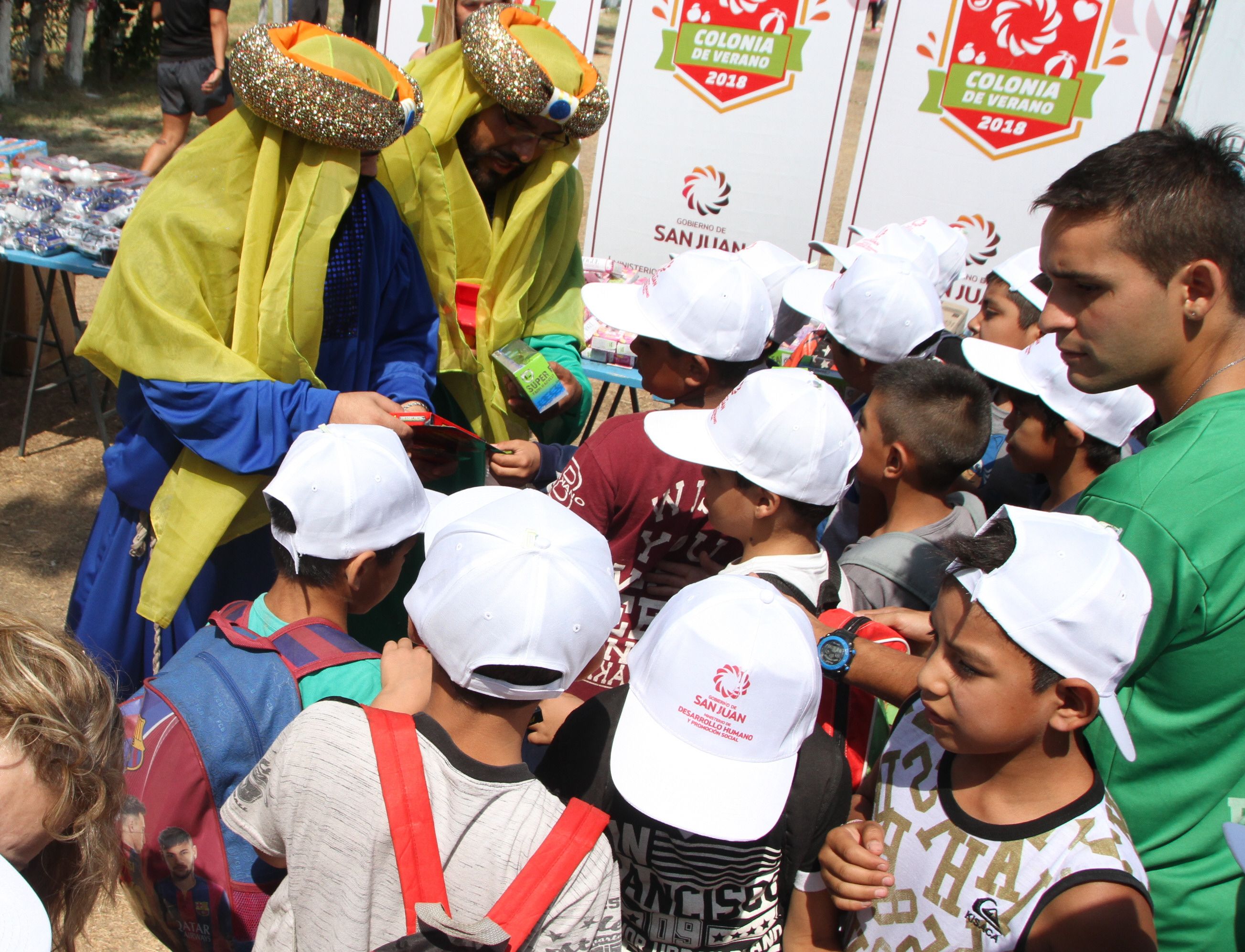 Con sus trajes impecables y con la paciencia necesaria como para entregar tantos regalos, los Reyes pisaron suelo chimbero. “Reyes Magos, Reyes Magos” corearon los casi 400 niños, mientras hacían palmas. La visita de los Reyes fue muy bienvenida, al igual que los regalos que los chicos recibieron. Y el entusiasmo de ver a Melchor, Gaspar y Baltazar fue tan grande que los niños y hasta los adultos ni cuenta se dieron que no tuvieron pileta durante toda la jornada. La pileta es la actividad que más gusta en todas las colonias.