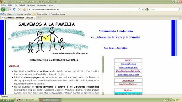 "Somos un grupo de ciudadanos sanjuaninos convocados a raíz de la sorpresiva aprobación en la Cámara de Diputados de la Nación de la Ley que equipararía las uniones homosexuales con el Matrimonio. Los invitamos a sumarse a la iniciativa ciudadana Salvemos a la Familia". Así comienza la convocatoria que se puede leer en www.salvemosalafamilia.com.ar, el sitio oficial de 10 familias que se unieron para manifestarse en contra de la legalización del casamiento entre personas del mismo sexo. Organizaron una movida con convocatoria abierta a todos los sanjuaninos, sin distinción de ideologías políticas ni religiosas, que quieran mostrar su disconformidad sobre el tema. La cita es para el próximo 29 de mayo a las 16 horas, frente al Centro Cívico.