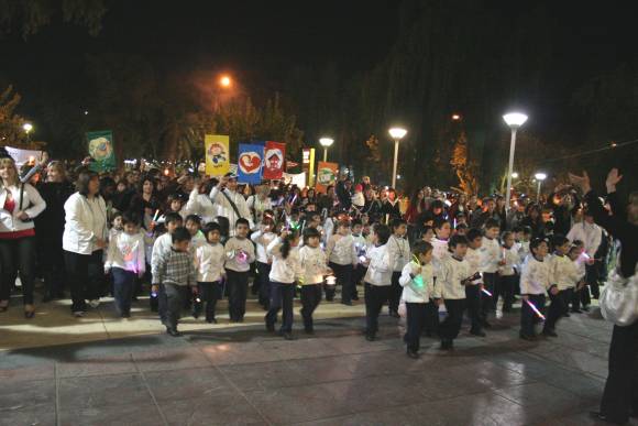 Fue la primera vez que se hizo esta marcha y su slogan fue "Con la luz de nuestros niños, caminamos hacia el futuro que soñamos", en el que participaron los 65 jardines de instituciones privadas de la provincia. Y para "iluminar" el desplazamiento, las familias llevaron velas y antorchas, mientras que los pequeños portaron linternas y luces de colores. "Para festejar los 45 años de la educación privada y el Bicentenario, hicimos esta gran convocatoria. Y fue increíble la respuesta de todas las familias", se asombró Graciela Gattoni, supervisora de nivel inicial de educación privada de San Juan.