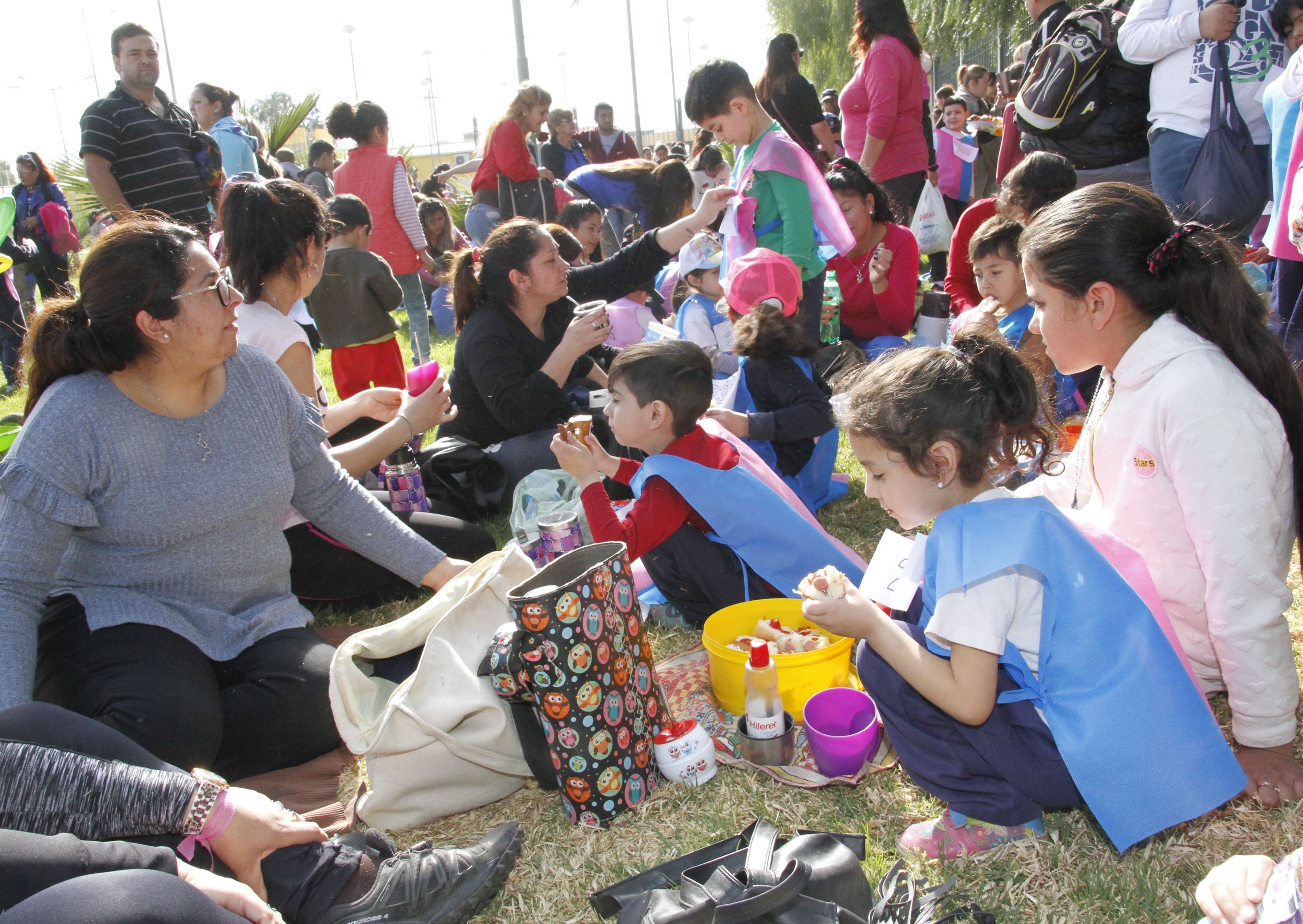 Como si fuese un gran picnic, los chicos sacaron sus meriendas y descansaron tras un agitado comienzo. Las mamás aprovecharon la oportunidad para llevar hasta el mate y pasar un lindo día en familia.