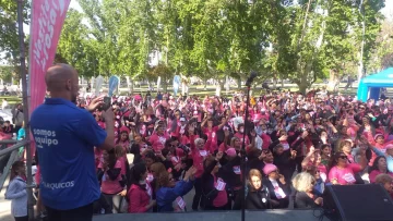 Por primera vez tras la pandemia, volvió la tradicional maratón contra el cáncer de mamas. El evento propiamente dicho arrancó a las 11, pero desde las 8.30 familias completas llegaron al Parque de Mayo con remeras rosas para la nueva edición de “Maratón: Juntas Contra el Cáncer de mama”. Hubo juegos, gimnasia y sorteos.