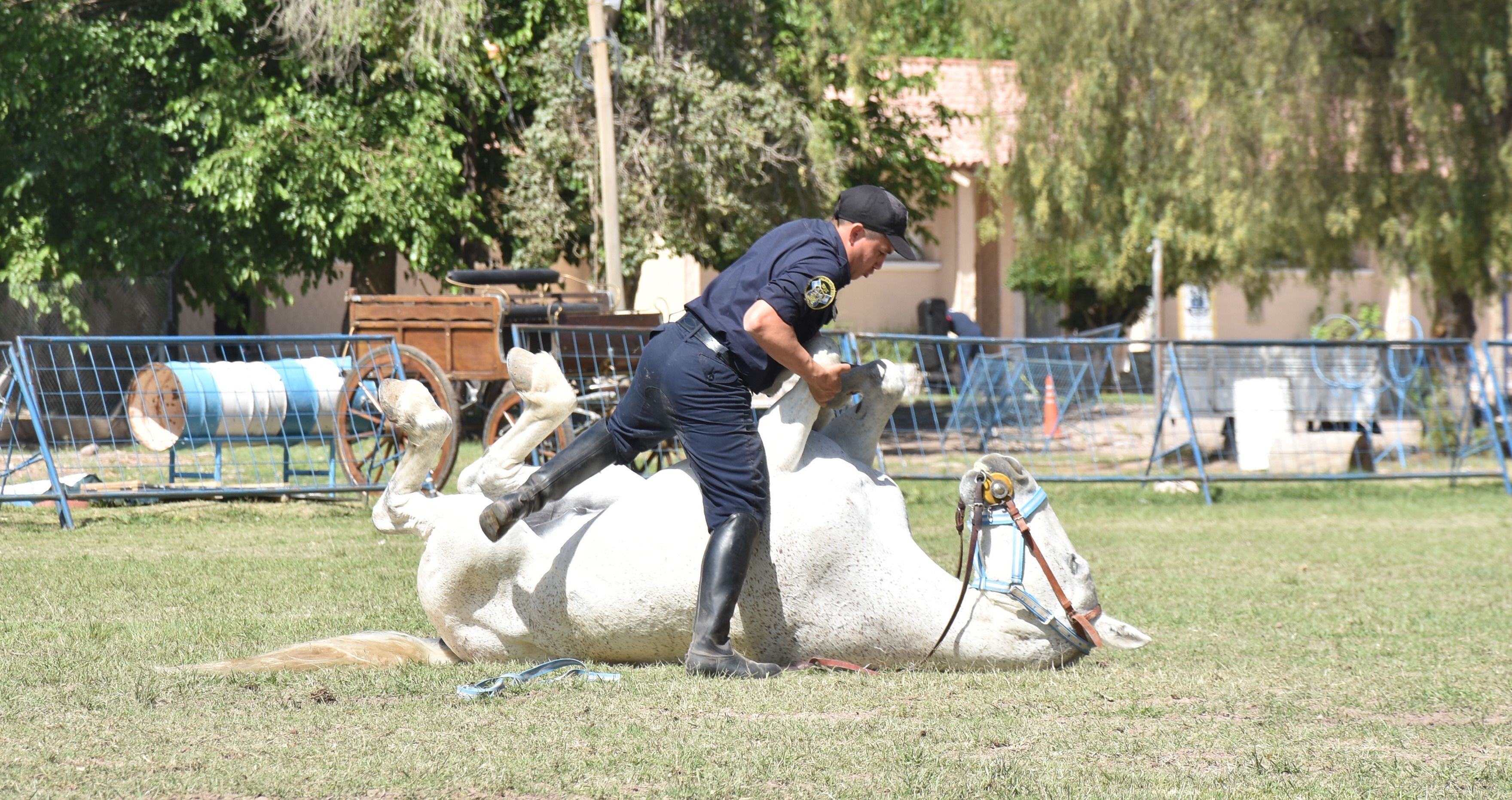 Ternura. El cabo Iván Gutiérrez realizó ejercicios con un caballo que la Policía rescató herido y maltratado. Tras sus cuidados, el animal se recuperó.