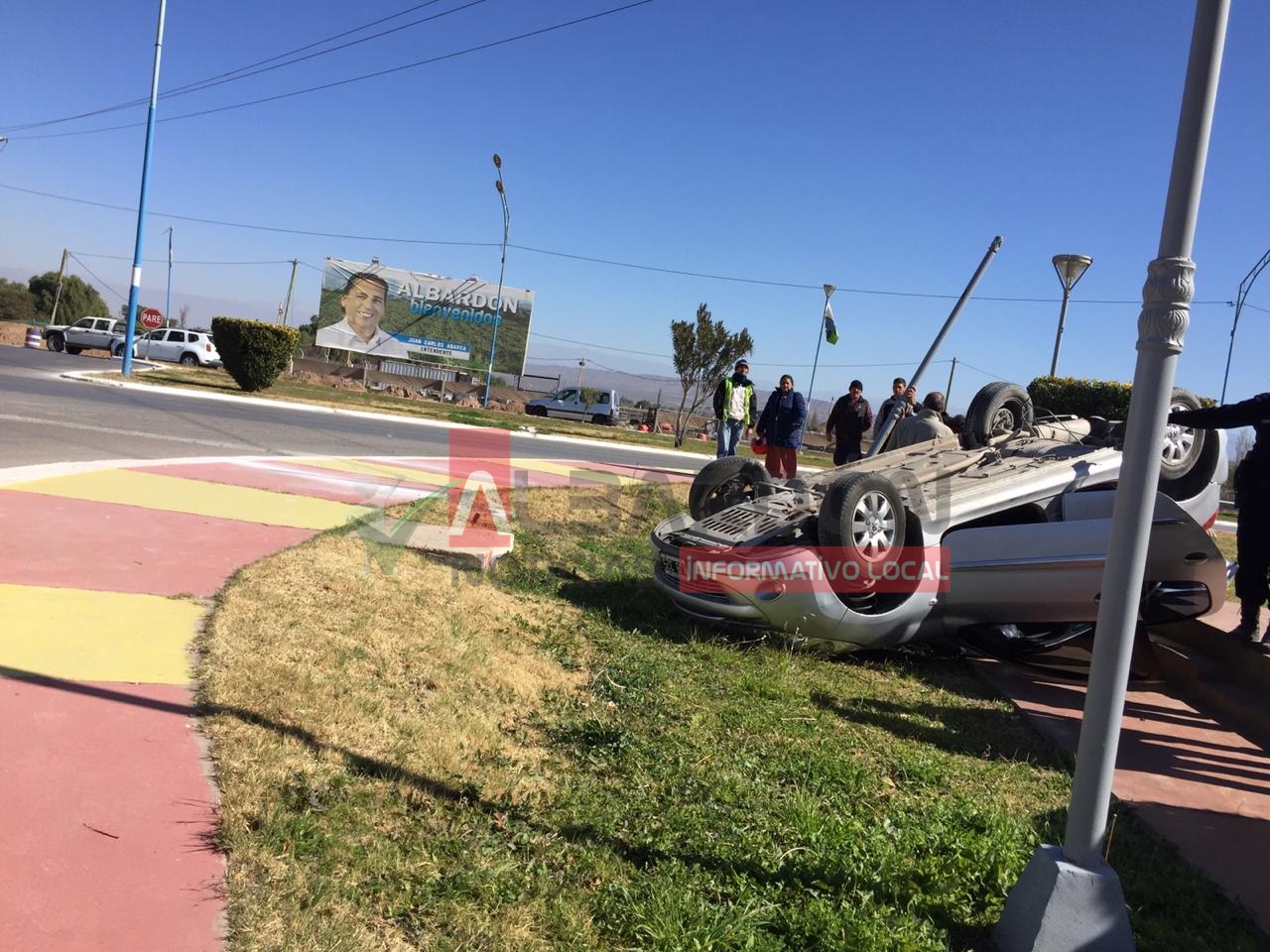 Pasado el mediodía de este sábado, un auto en el que viajaban una mujer y su hija de 6 años terminó dado vuelta sobre la rotonda ubicada en el ingreso del departamento Albardón. Afortunadamente, según informaron desde la Policía, ambas están fuera de peligro.