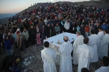 San Juan, 12 de abril.- Una verdadera multitud participó hoy de la Misa Pascual celebrada en las Sierras Azules de Zonda, a 1.650 metros de altura.
