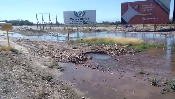 Una enorme pérdida de agua que lleva casi un mes en una zona de Pocito, complica a los vecinos de la zona, quienes ya notan una merma en el caudal que sale por sus canillas.