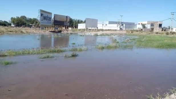 La rotura está en Calle 9 y Ruta Nacional 40 y es tan importante que hizo que se creara una gran laguna.