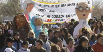 Como no todos los jóvenes podrán viajar a Brasil para compartir una jornada con el papa Francisco, ellos decidieron hacerlo participar en la procesión. Fueron los chicos del Movimiento Circulista de Caucete que hicieron un muñeco gigante del Pontífice para peregrinar junto a los devotos de María. Esto ocurrió ayer, en Caucete, durante la procesión en honor a la Virgen de la Paz. Según los organizadores, unas 400 personas participaron de esta demostración de fe, el doble del año pasado.