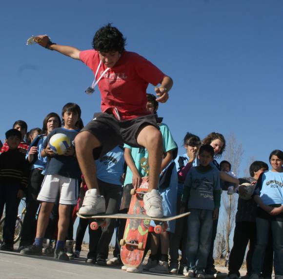 En la plaza principal del barrio Las Pircas, en plena siesta, todos se reunieron a ver las acrobacias de los skaters. Los chicos hacían pasadas frente a la gente y se fueron eliminando entre sí de acuerdo a la dificultad y la precisión de los movimientos que realizaban. El que ganó fue Alexander Rosselot (14), quien se llevó un trofeo y una medalla. “La mayoría de los que patinamos nos conocemos porque vamos a la plaza Laprida y ahí aprendemos cosas. Está bueno hacer esto también en el barrio”, dijo el ganador.