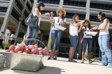 Al principio, la gente miró las pequeñas gamelas cargadas de vid desde lejos. Algunos creyeron que la fruta estaba a la venta. Pero cuando percibieron que la cosa venía de regalo, no tardaron en arrimarse y pedir un racimo. "Andá y pedile a la chica", le dijo una mujer a su hijo que no superaba los 5 años. Así, en pocos minutos, la entrada del Centro Cívico se revolucionó. En este lugar donde la gente circula entrando o saliendo del edificio, empezó a amontonarse alrededor de las promotoras y de las gamelas. Lo que no pudieron hacer las chicas fue ingresar al Centro Cívico a repartir uva, ya que los encargados de la seguridad del edificio dijeron que no estaba permitido por cuestiones de higiene.