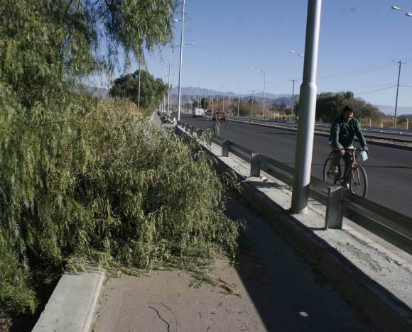 Es el camino obligado de los corredores y ciclistas que hacen ejercicio yendo hacia el Dique de Ullum. Sin embargo, el primer tramo del lado Sur de la bicisenda de la Ruta del Sol no se puede recorrer, ya que está atravesado por ramas, árboles caídos y basura. Por eso, a los deportistas y a las personas que se mueven en estos vehículos de dos ruedas no les queda más que andar por la ruta junto con los autos.