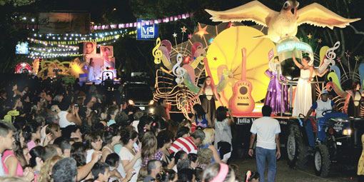 Los muchachos con boina y chaleco dieron un salto sobre un carro y tomaron a las mujeres en sus brazos con pasión. Unos metros más adelante, las hadas multicolores danzaron como si estuviesen flotando en el aire. Mientras esto sucedía en un tramo de la Central, casi llegando al Centro Cívico, el vaivén de los cuerpos semidesnudos cautivaron a la gente al ritmo de la batucada.