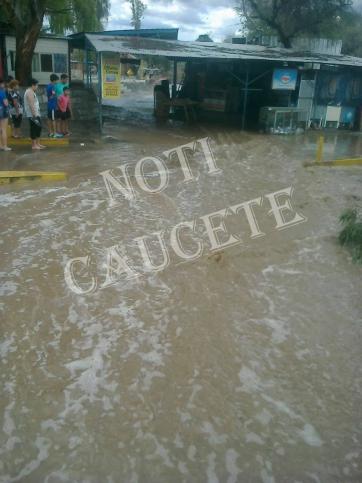 La intensa lluvia sorprendió a todas las personas que visitaban el paraje, ya que tuvieron que refugiarse en los distintos puestos de venta. La cantidad de agua caída fue tal que generó desbordes en la zona y Vallecito se convirtió en un río en pocos minutos.