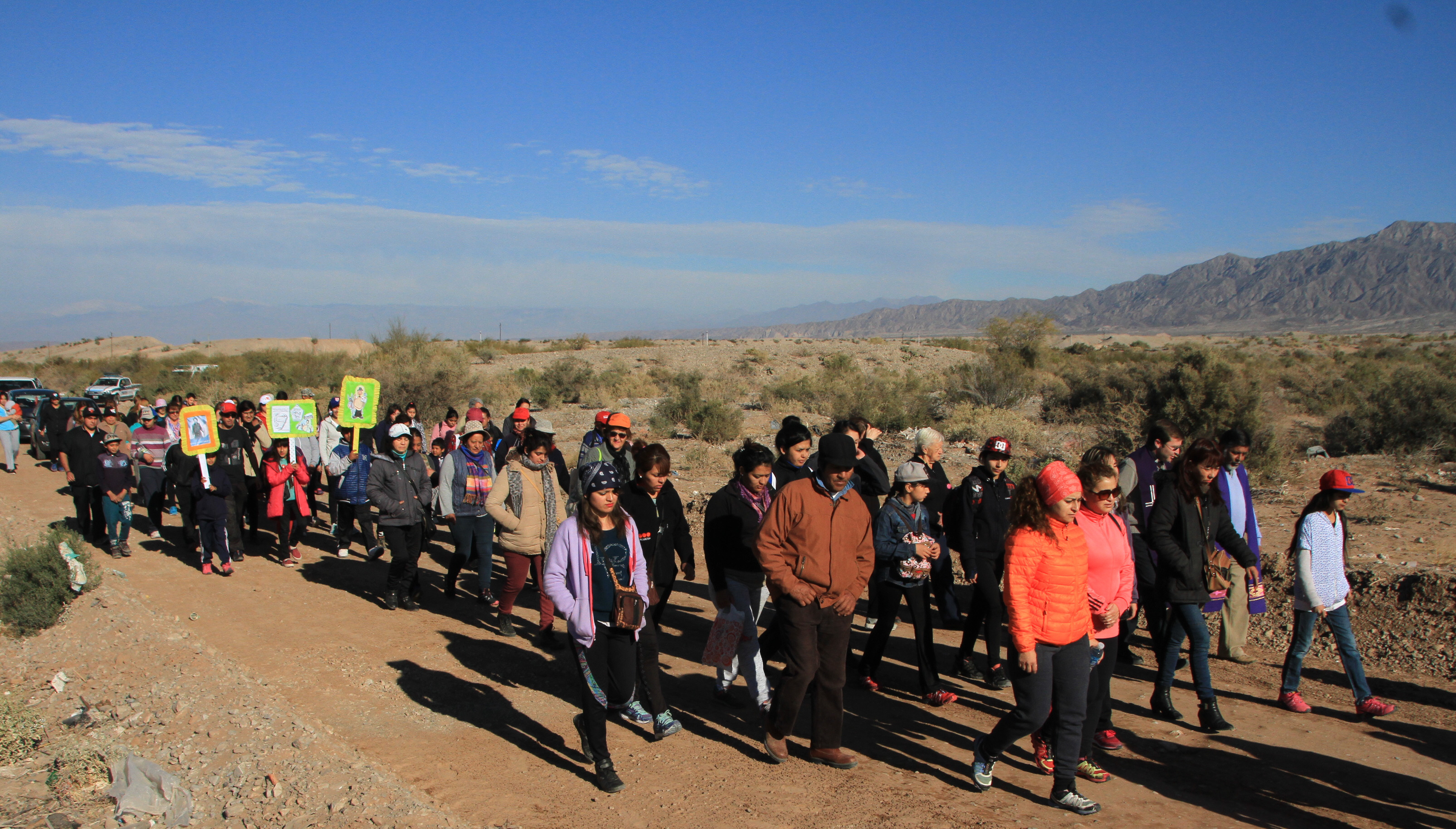 El encuentro fue en el marco de la segunda Peregrinación de la Familia, que organiza la Parroquia de Albardón y que cada vez convoca a más fieles. Este año hubo muchos niños que se animaron a caminar por una huella que por momentos no fue fácil. Las subidas y la tierra blanda hizo que la travesía tuviese sus dificultades. Aún así, todos llegaron a destino cerca del mediodía para participar de la celebración de la tradicional misa que se realiza en ese lugar los cuartos domingos de cada mes.