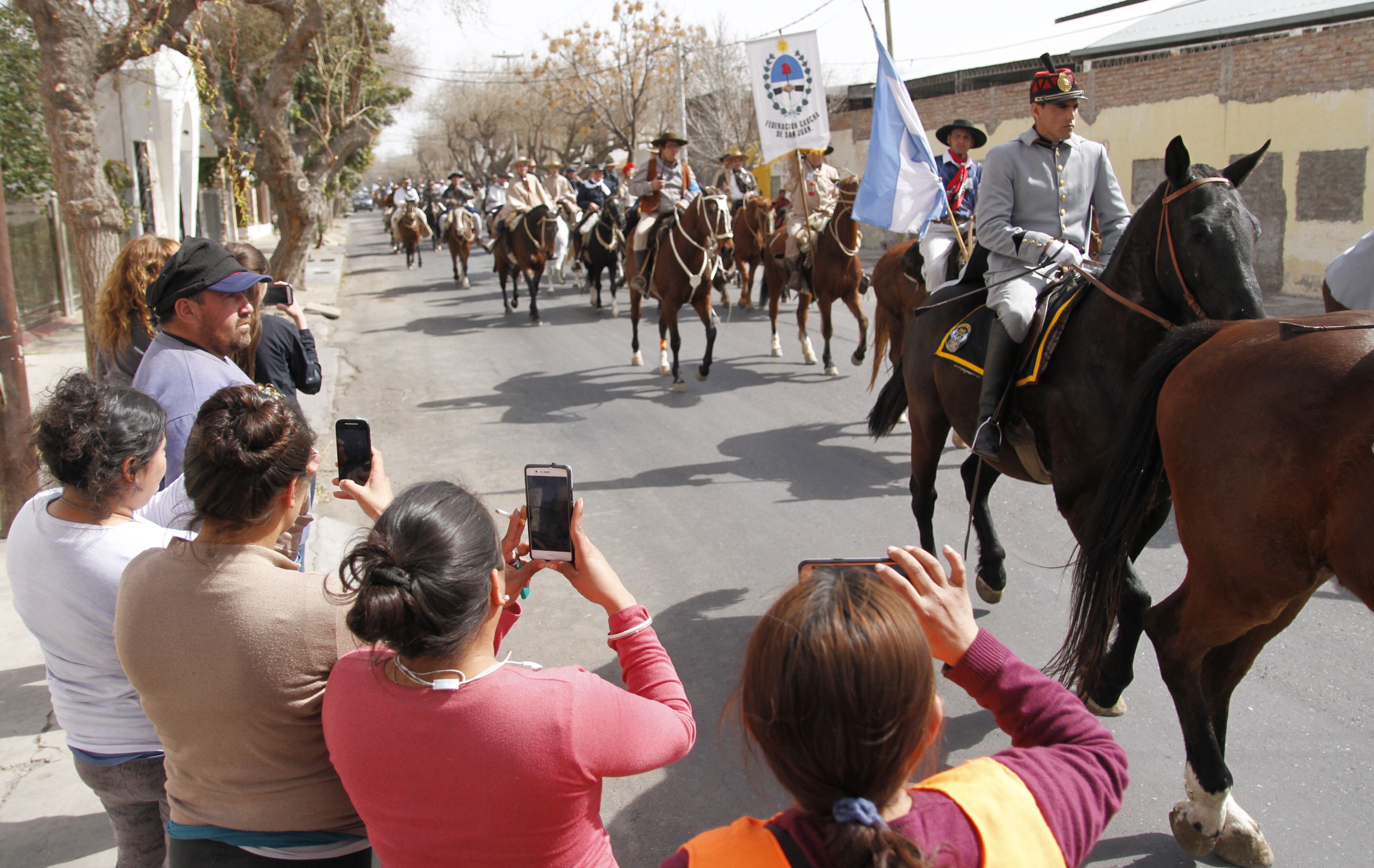 A pesar de las ráfagas de viento frío y la tierra que había en el ambiente, los jinetes avanzaron tranquilos por las calles de la ciudad, rumbo a Santa Lucía. Allí realizaron la tradicional parada por la Casa del Gaucho donde esta vez hubo algunas inauguraciones de obras. Luego siguieron hacia Caucete.