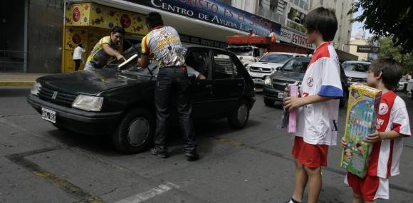 Los charcos de jabón en el asfalto llamaban la atención y los novatos limpiadores de parabrisas corrían entre los autos, trataban de mover rápidamente los brazos y miraban de reojo el semáforo para asegurarse no sufrir un accidente.