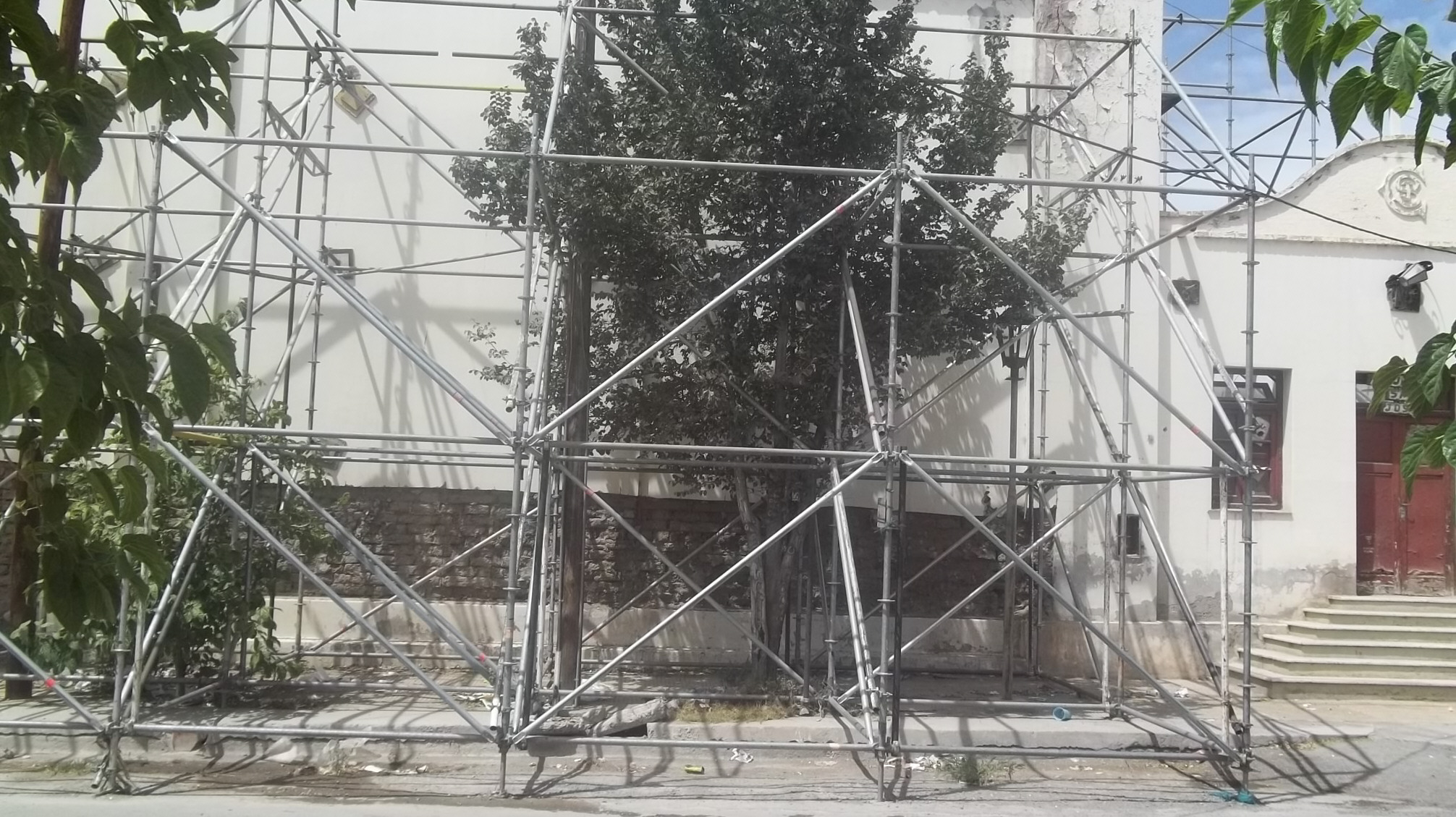 2012 Tras un año y medio sin realizar las refacciones, las autoridades dijeron que no encontraban una empresa que pudiera usar el sistema de andamios Layher para apuntalar estructuras.