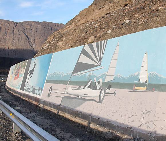 Las pinturas parecen un fiel muestrario de lo que se va a ver en el departamento: los picos nevados y la Pampa de El Leoncito, las Ruinas de Hilario y la Capilla Nuestra Señora del Carmen, el rafting y el carrovelismo. Los paisajes, las construcciones, la cultura y los deportes calingastinos plasmados en paredones ubicados en la ruta que lleva a Calingasta es lo que, desde hace poco, da la bienvenida a las personas que llegan al departamento. Esas pinturas, que son como una vidriera que promociona el lugar, fueron hechas por un joven a pedido de la Municipalidad.