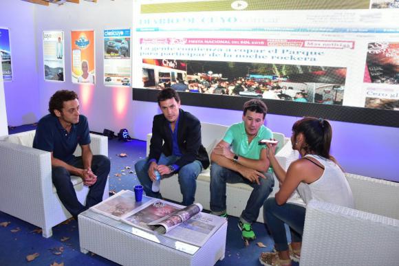 El stand de DIARIO DE CUYO en la Fiesta Nacional del Sol es uno de los más visitados. Ya miles de personas pasaron para sacarse fotos entre el martes y el miércoles, y hasta los funcionarios locales llegaron a posar para los flashes. Pero la visita de la segunda noche fue por demás lujosa, ya que Guillermo Coria concedió una entrevista exclusiva con la periodista Vanessa Chaparro.