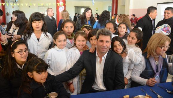 El padre Víctor Hugo Gallardo bendijo el comienzo del desayuno como todas las mañanas y posteriormente, Sergio Uñac, saludó a los chicos: ‘Agradecer a la directora, a los docentes, no docentes y a todos ustedes por este recibimiento. Venimos a hacerles una invitación para mañana viernes a partir desde las 16 horas, en calle Las Heras y Avenida Libertador, donde habrá grupos musicales de San Juan y del país, para que festejen y se diviertan. Viviremos un jornada con Unicef con todos los chicos de San Juan y de la Argentina. Conseguiremos el transporte para contar con su presencia y que puedan festejar su día como se lo merecen’.