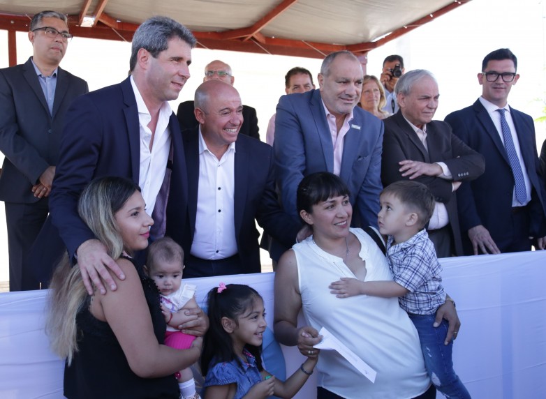Sergio Uñac encabezó esta mañana la entrega del barrio Conjunto 10, denominado Barrio Serranías del Sur, dentro del Programa Federal de Construcción de Viviendas. Noventa y ocho familias recibieron las llaves de las casas, que tienen una superficie total de 60,77 mts.
