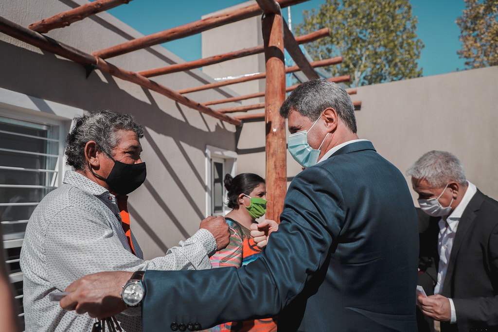 Durante la entrega, acompañaron al Gobernador el secretario de Hábitat y Vivienda, Robert Garcés; el director del IPV, Marcelo Yornet y el intendente de 25 de Mayo, Juan Carlos Quiroga Moyano.