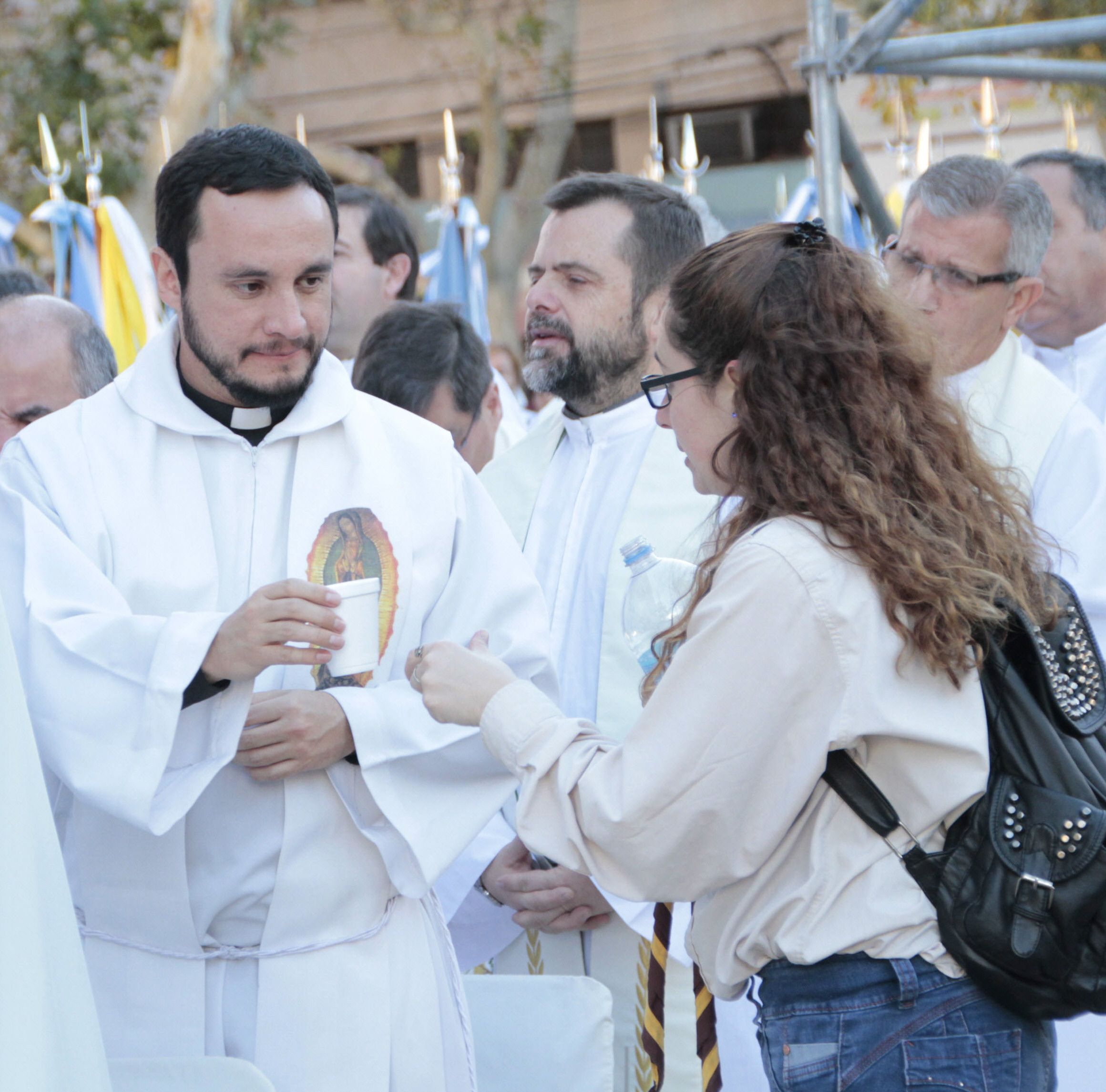La celebración del Corpus Christi arrancó cerca de las 16.30. Luego de la misa y algunas emotivas palabras llegó el turno de la procesión, que fue encabezada por cientos de alumnos de colegios religiosos y sus banderas. La peregrinación tuvo una extensión de más de 3 cuadras y la gente vivió ese momento con mucho entusiasmo. Y al finalizar, después de otras oraciones, Lozano y Delgado se quedaron saludando a los fieles. La gente hizo largas filas para poder recibir la bendición de ambos monseñores.