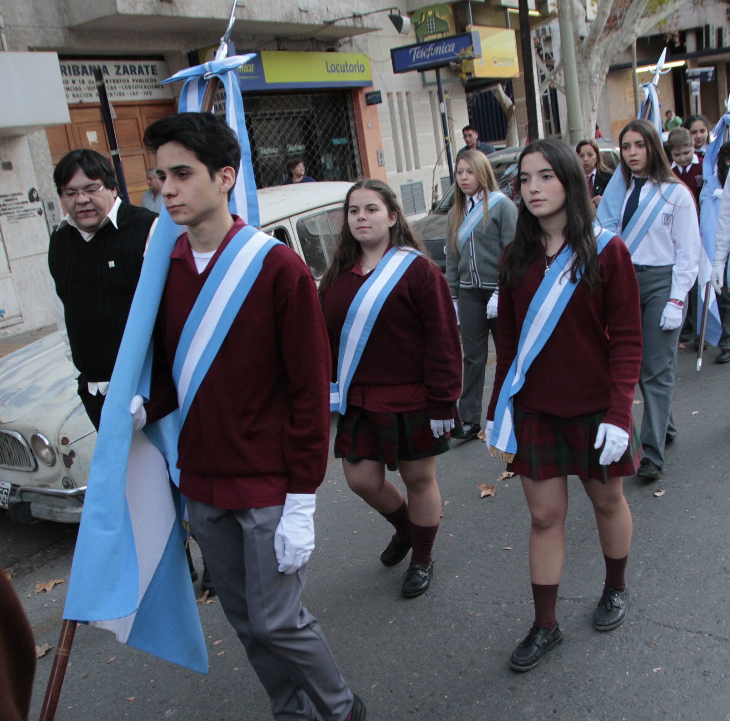 Las banderas. De la celebración participaron los colegios católicos. Fueron con los cuerpos de banderas.