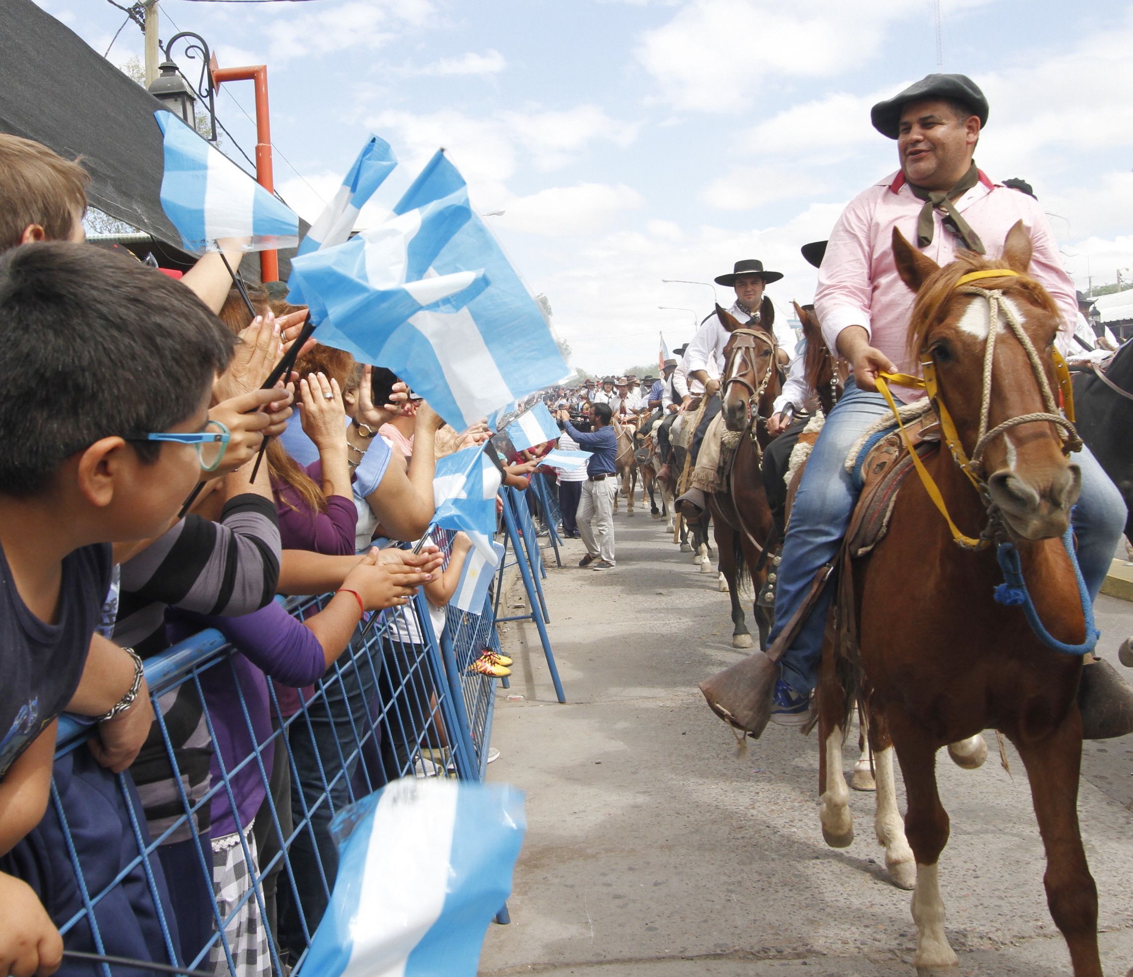 Los miles de jinetes, que hicieron una columna que pareció eterna, ingresaron al paraje como si fueran grandes héroes. Entre el ruido de las herraduras de los caballos, se escuchó sirenas, canciones folclóricas y los aplausos de la gente. Sumado a eso, los chicos vestidos con sus pilchas tradicionales (ver aparte), alentaron a los jinetes, y fue ahí que la emoción embargó a todos. Es que todo se tiñó de celeste y blanco y nadie quedó sin aplaudir. Hasta la gente que estaba almorzando en los restaurantes del paraje se detuvo a mirar ese desfile de gauchos que con los sombreros en alto, y saludando a todos hicieron su entrada triunfal al oratorio.