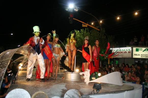San Juan, 21 de febrero.- Anoche, la penúltima noche del Carnaval de Chimbas, se vistió de fiesta con el desfile de carruajes, encabezado por Evangelina Carrozo, ex Reina del Carnaval de Gualeguaychú, quien se hizo conocida en 2006 por mostrar un cartel a favor del medio ambiente y en contra de las papeleras en la cumbre de presidentes europeos y latinoamericanos.