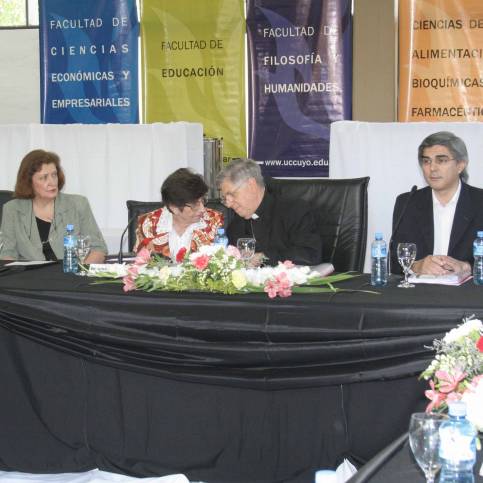 Flanqueada por los ministros de Desarrollo Humano, Daniel Molina, y de Eduación, Cristina Díaz, y por el arzobispo Alfonso Delgado (quien en varias oportunidades hizo pública esta misma postura, sobre todo a través de los medios), la rectora de la Universidad Católica de Cuyo, María Isabel Larrauri, abrió con un fuerte mensaje en contra de la despenalización del aborto.