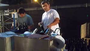 La embotelladora tenía grandes dimensiones y a través de un vidrio reflejaba este procedimiento, mientras que luego una persona se encargaba de colocar la botella en la etiquetadora que automáticamente les colocaba el rotulo de presentación.