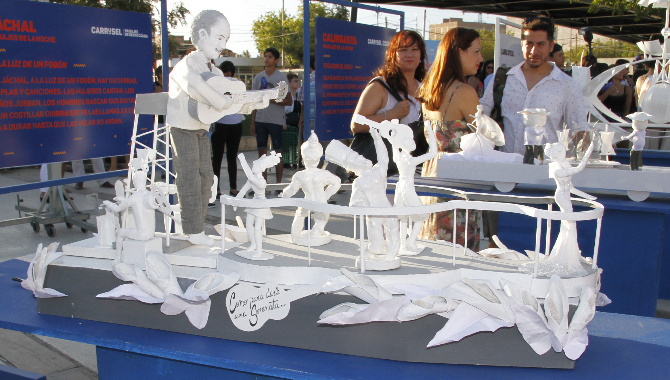 Su carro representará la tradición y formará parte de los paisajes de la noche. Sus creadores dijeron que mostrarán a Jáchal, a la luz de un fogón, con guitarras, coplas y canciones. El carro tendrá niños, hombres y mujeres.